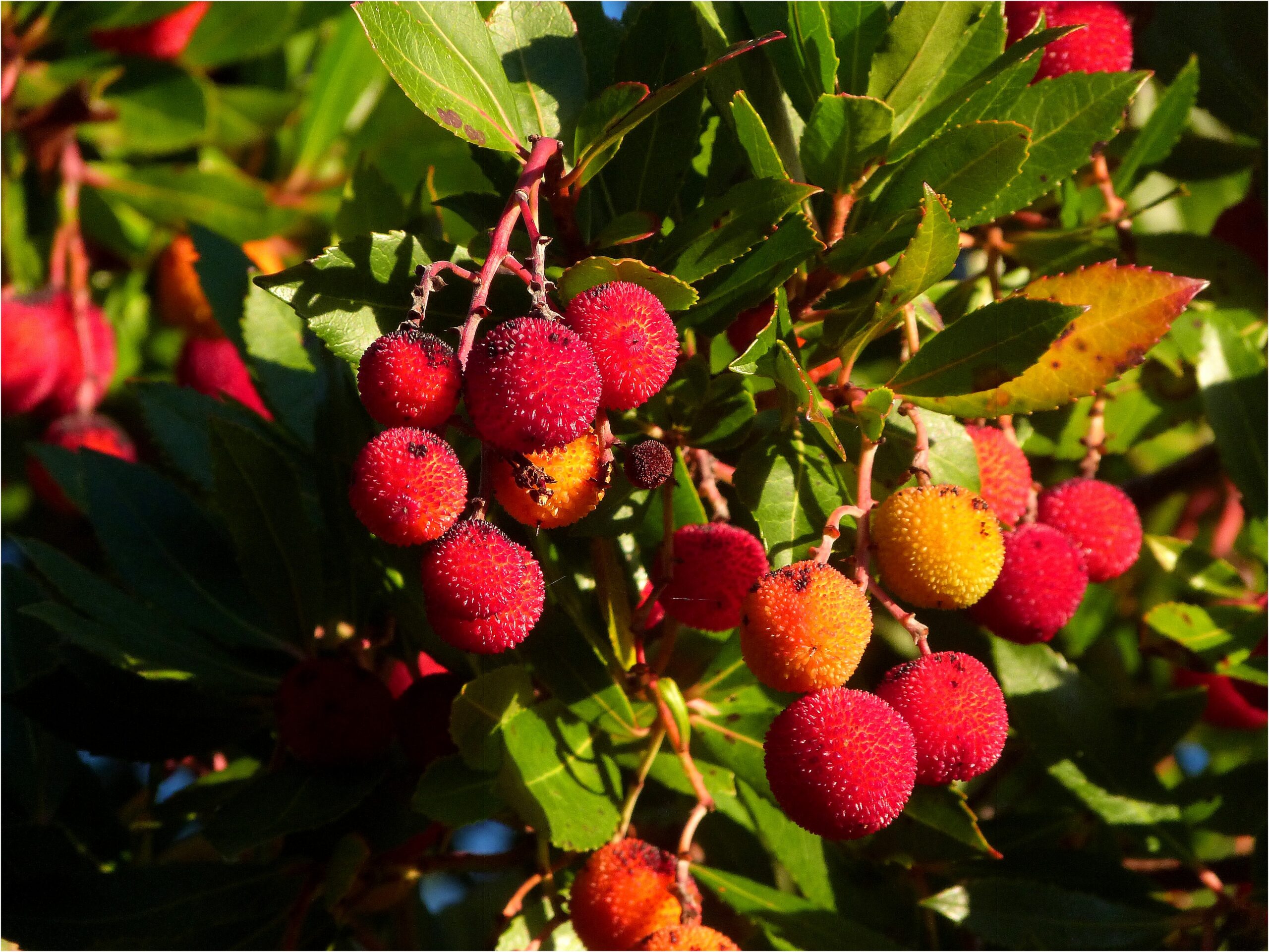 Très répandu en Corse, l’arbousier est un arbre pouvant atteindre entre 5 et 15 mètres de haut. L’arbousier est avec l’oranger le seul arbre à porter simultanément des fleurs et des fruits. L’écorce de l’arbousier est d’un gris un peu brun alors que son bois est brun foncé presque rouge et ses feuilles d’un vert éclatant. Les fleurs de l’arbousier sont blanches tirant sur le vert pale en forme de clochettes et pendent en grappes en même temps que les fruits apparaissent de septembre à janvier. Les fruits de l’arbousier sont les arbouses qui sont des fruits sphériques allant du jaune clair au rouge écarlate en passant par l’orange tout au long de la maturité. L’arbouse est recouverte d’une enveloppe portant de petites aspérités en forme de picots émoussés donc inoffensifs qui rappelle la fraise chinoise.L’arbousier portant ses fruits pendant plus d’une année, ceux-ci sont notamment consommables en hiver où l’apport en vitamine C qu’ils procurent est appréciable. En lui-même, de par ses fleurs blanches et ses fruits multicolores l’arbousier fait songer à un arbre qui aurait été décoré pour Noël. Peu parfumée l’arbouse a une chair blanc nacré un peu farineuse, acidulée et sucrée qui devient délicieuse en confitures, gelées, glaces et sorbets. L’arbouse peut également être macérée dans du vinaigre comme condiment, dans de l’alcool ou distillée, en Corse, il existe une bière parfumée à l’arbouse. (https://www.lacorse.info/la-corse/la-flore-corse/l-arbousier-corse/)
