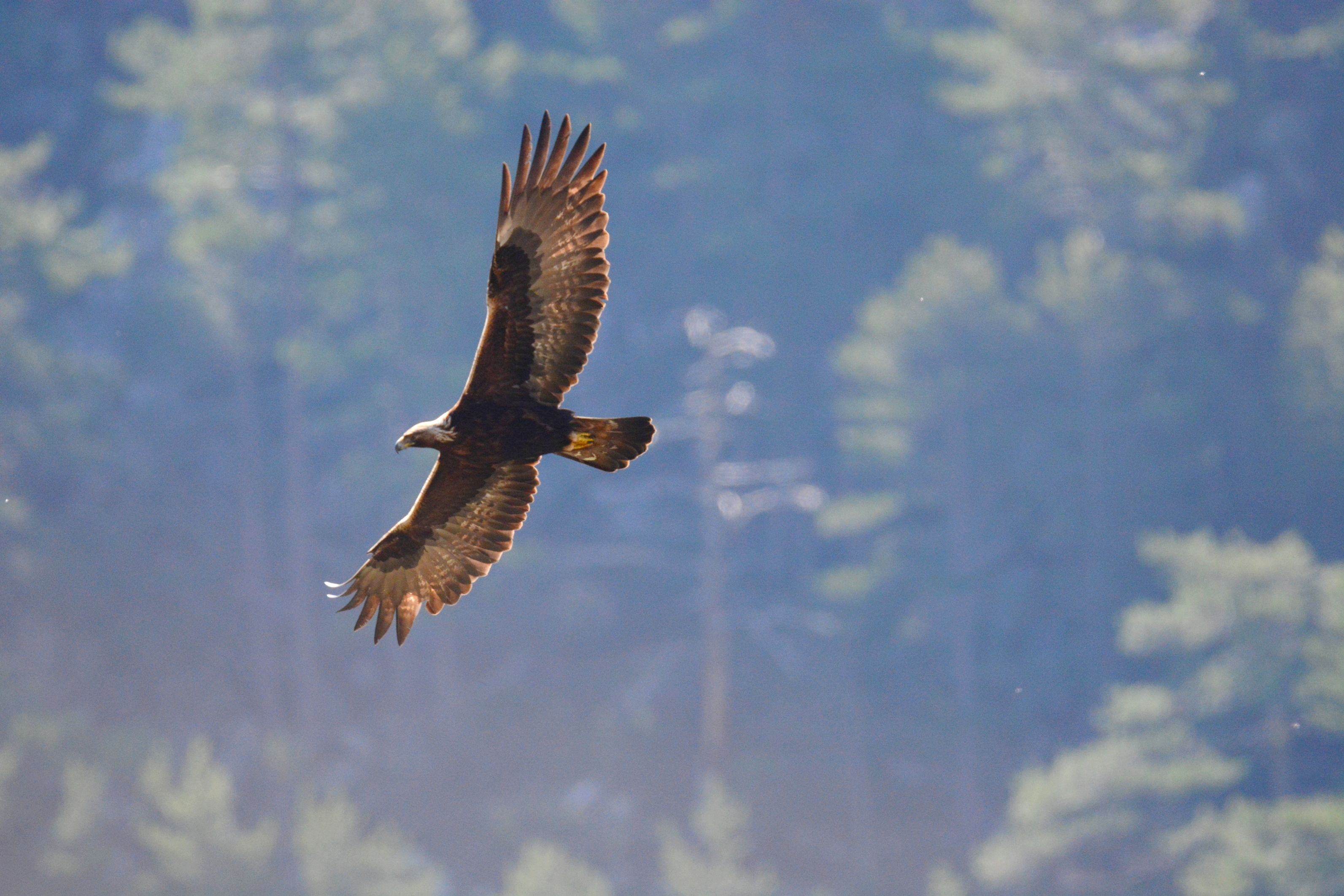 Un des aigles du mont San Pedrone saisi en vol
